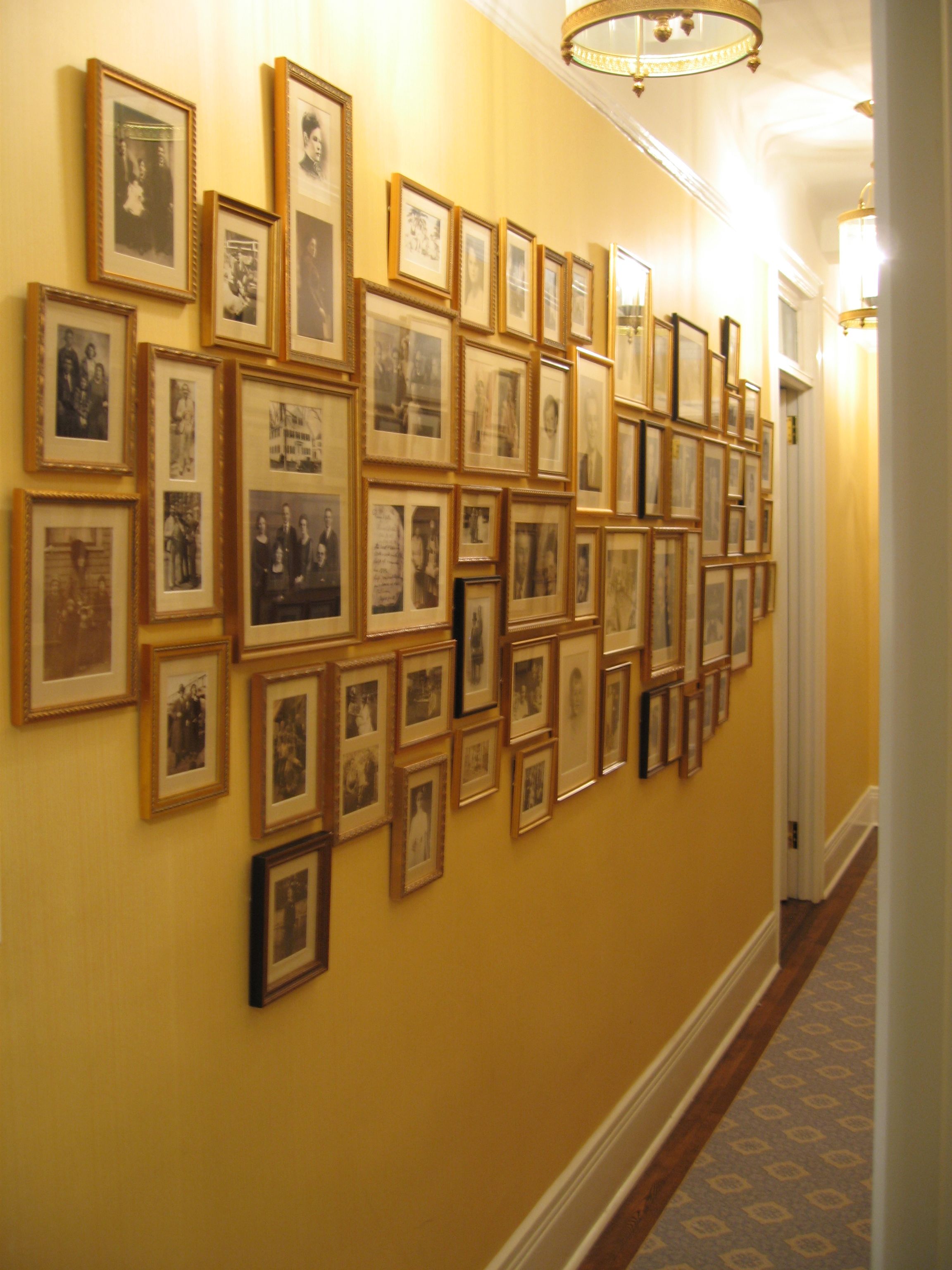 2. Here’s another example of a family photo wall in a more contemporary hallway with a chair rail. Keeping the walls of the hallway a crisp white give it a gallery-like feel.